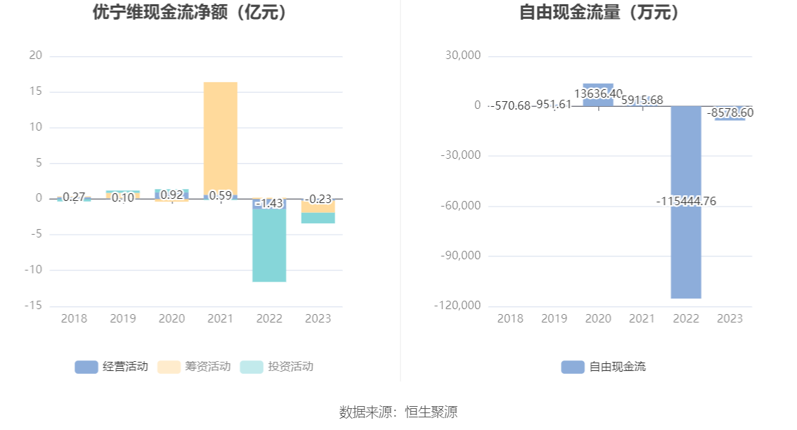 进一步统计发现,2023年公司摆脱现款流为-8578.60万元,上年同时为-115444.76万元。