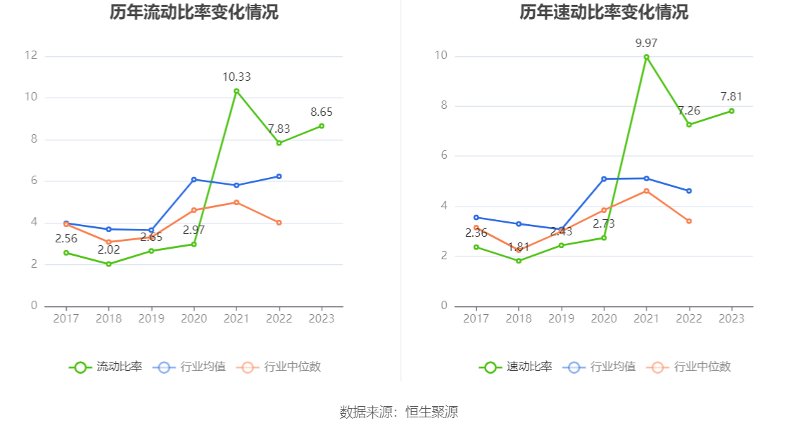2023年,公司流动比率为8.65,速动比率为7.81。