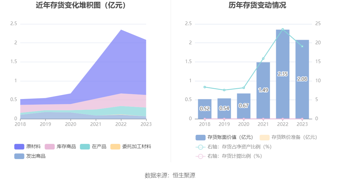 从存货变动来看,死心2023年年末,公司存货账面价值为2.08亿元,占净钞票的19.1%。凭据财报,公司本期莫得计提存货跌价准备。