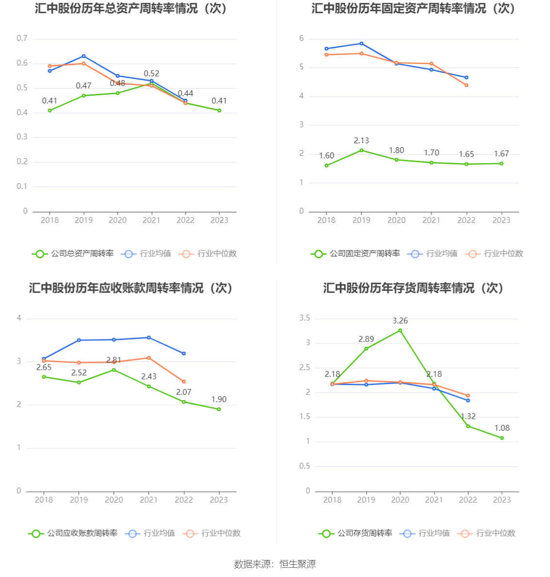 营运智商方面,2023年,公司公司总钞票盘活率为0.41次,上年同时为0.44次(2022年行业平均值为0.45次,公司位居同业业28/58);固定钞票盘活率为1.67次,上年同时为1.65次(2022年行业平均值为4.66次,公司位居同业业54/58);公司应收账款盘活率、存货盘活率永诀为1.90次、1.08次。