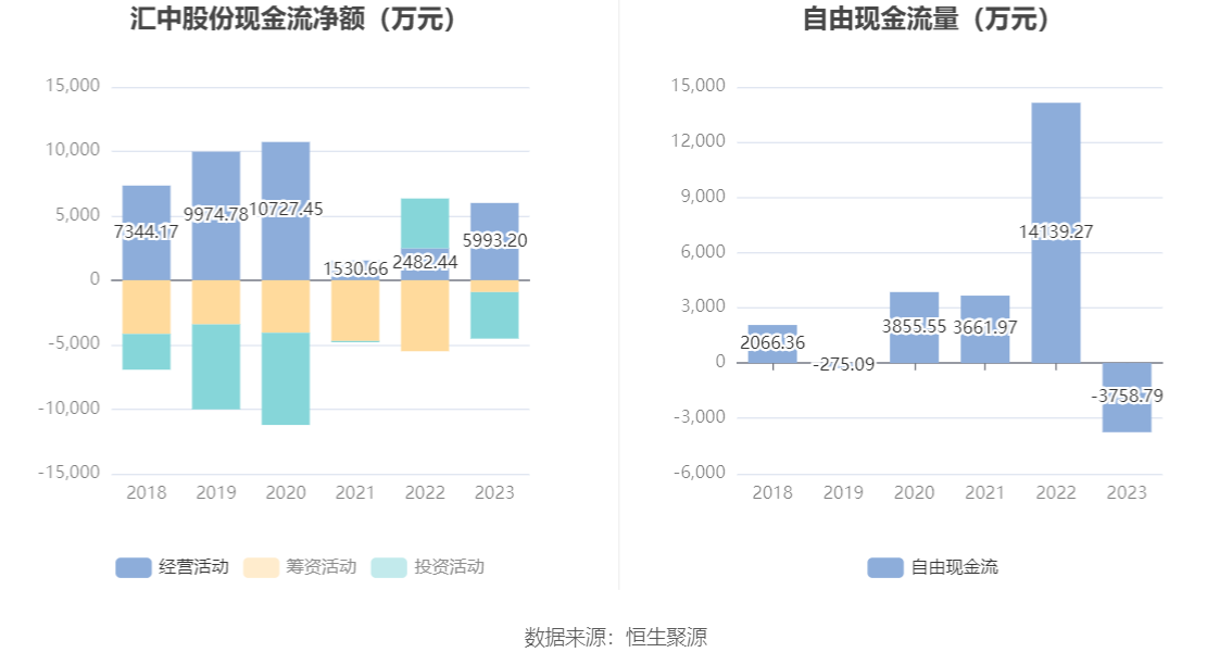 进一步统计发现,2023年公司目田现款流为-3758.79万元,上年同时为14139.27万元。
