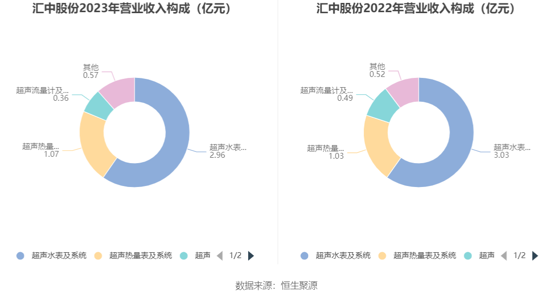 分家具看,超声水表及系统、超声热量表及系统2023年毛利率永诀为43.37%、56.73%。