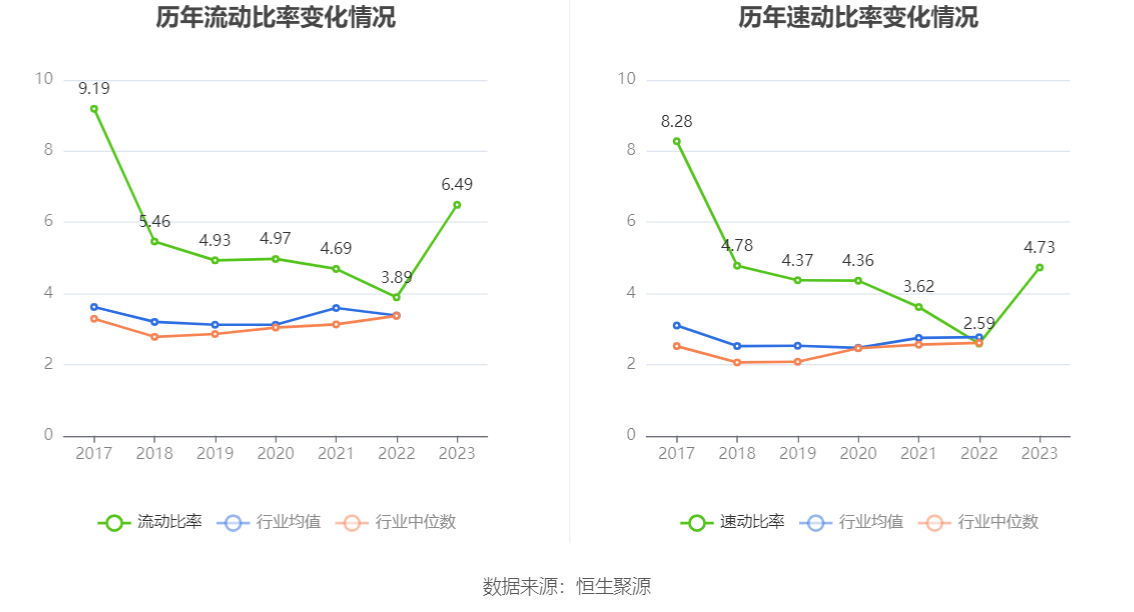 2023年,公司流动比率为6.49,速动比率为4.73。