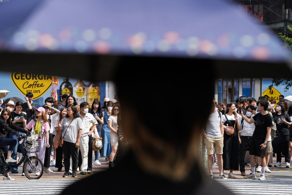 2023年6月29日,行东说念主在日本东京涩谷街头恭候过马路。新华社记者张笑宇摄