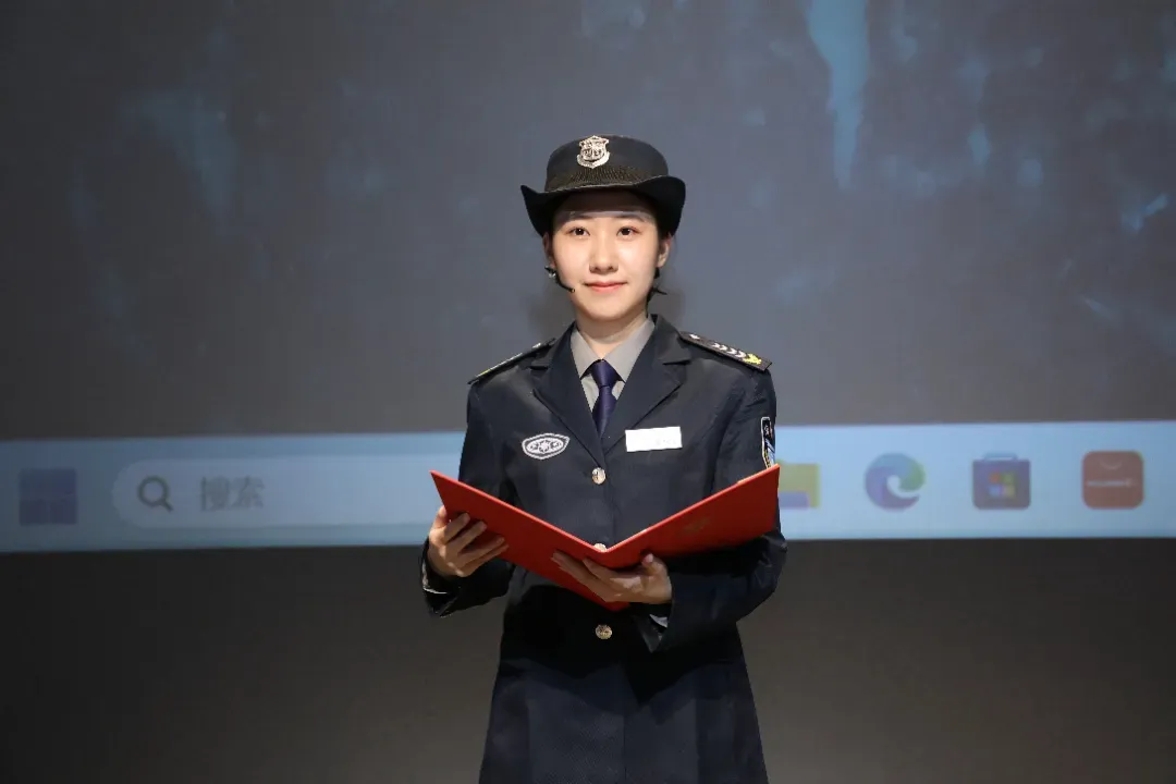 赵予宁(右一)与共事行为保安员代表,受邀投入学校2025年春节团拜会